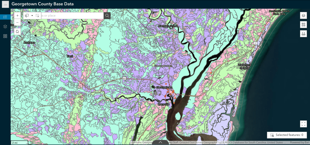 Working to identify priority areas for the implementation of nature-based solutions to mitigate flooding. The ArcGIS Experience Builder below presents a visualization of non-proprietary data layers pertinent to inundation analysis that have been collected, isolated, and visualized as part of the initial phase of this project. Sites of interest were collected with Survey123 and then turned into a data layer file.